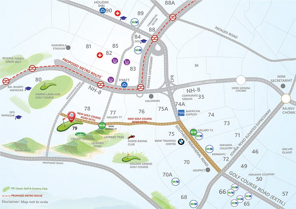 The project is located in the prime Golf Course Extension Road belt. M3M Golf Estate 2 Sector 65 Gurgaon enjoys excellent connectivity to business hubs, malls, entertainment centers, and premium schools.