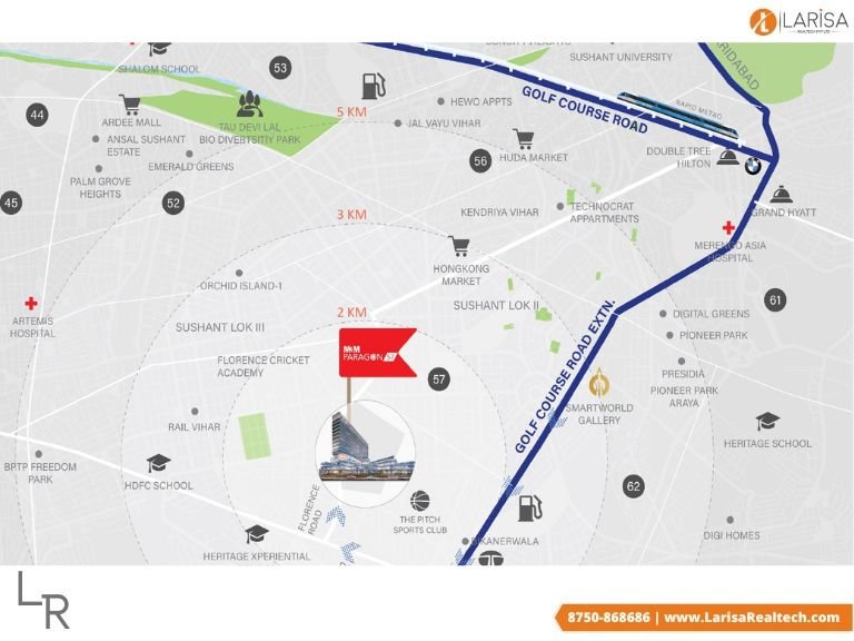 M3M Paragon 57 is ideally placed in Sector 57, Gurgaon. It offers excellent access to key commercial and residential areas. The development allows easy access to major routes like NH-8, Golf Course Road Extension, and Dwarka Expressway. This makes it suitable for businesses that require high visibility and accessibility. It is also near upscale residential neighborhoods, educational institutions, healthcare facilities, and entertainment venues, ensuring a steady customer base for retail and office spaces.