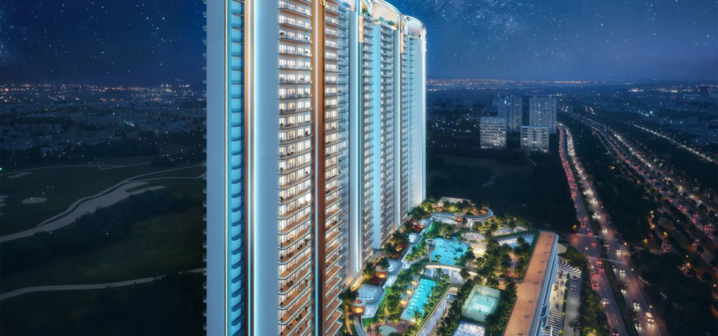 High-speed elevators, dedicated parking, 24/7 security, landscaped areas, retail zones, and food courts are some of the key amenities.